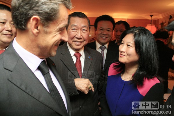萨科齐(右)与《看中国》时报社长Patricia Chen女士(左)
