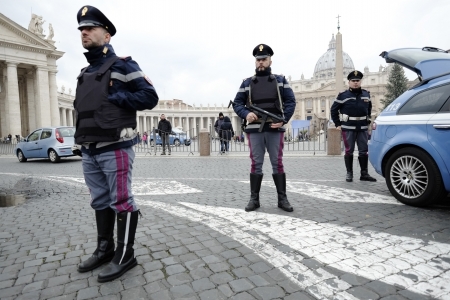 意大利已加强戒备,派驻近5000名士兵到全国街头站岗和巡逻,除了旅游景点,士兵还驻守外交使馆、犹太学校以及教堂。梵蒂冈附近,保安也已全面加强。(Getty Images)