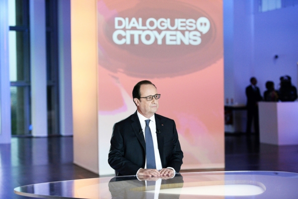 【记者林莲怡综合报导】长期民调低落的法国总统奥朗德(François Hollande)于4月14日参加了法国电视第2台(France2)的直播节目《市民对话》(Dialogues citoyens),他在90分钟的节目中接受记者提问,并与4名背景不同的选民对话。