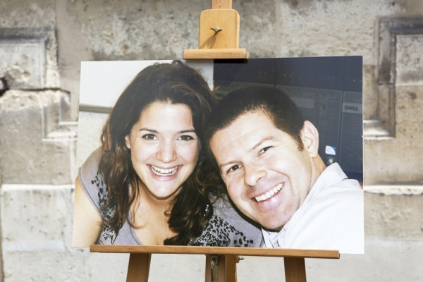 6月15日摆在法国内政部纪念仪式上的遇害警官夫妇的照片(AFP/Getty Images)