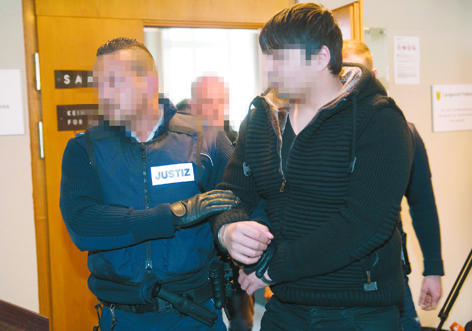 凶手侯赛因•K在遭判刑后,被带出法庭。(AFP/Getty Images)