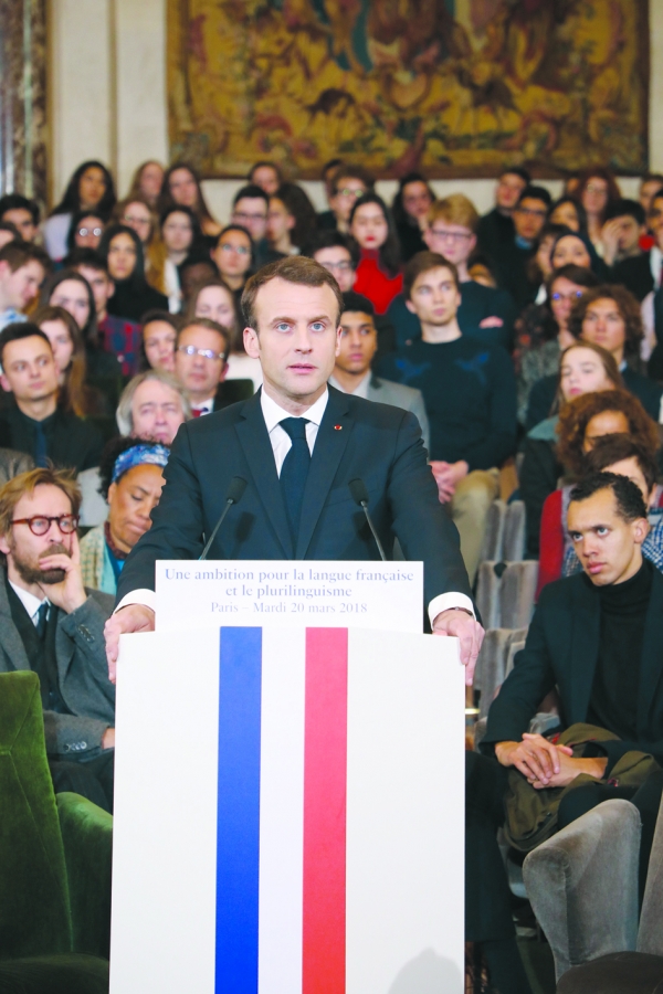 他在演说中多次提及“法语已不再独属于法国,而是一门全世界共同拥有的语言”。尽管他自己的英语水平不错,但他还是表示:“英语不应当是欧洲人唯一的一门外语”。因此马克龙在出席会议的院士面前,详细阐述了三十多项推广举措,表达了想从说法语的人数方面,把法语提升至世界第三大语言的愿景。