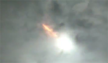 事发时漆黑的天空突然出现一道亮光,划向地平线,形成一条长长的“尾巴”,照亮半个夜空。当光源快要接触地面时,亮光很快消失了。