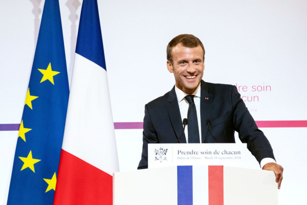 9月18日,法国总统马克龙宣布医疗系统改革方案。(AFP/Getty Images)