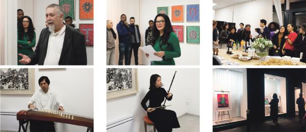 当晚的开幕酒会还邀请了两位华人音乐家为嘉宾带来了古筝与二胡演奏的多首中国传统乐曲。来自各界的嘉宾站满了整个画廊,人们在优美的旋律中,品尝着中西式的点心,互相交换着对艺术的见解。