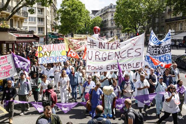 6月6日示威者在巴黎进行游行,以抗议急诊工作条件恶劣。(Getty Images)