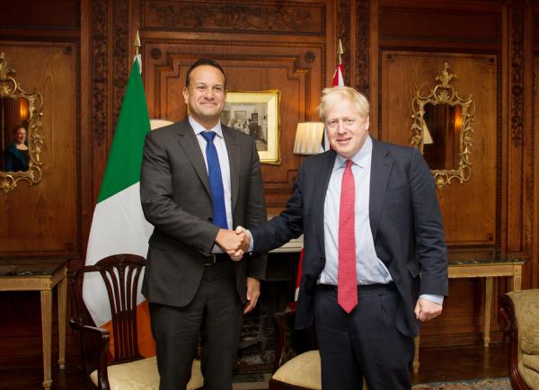 英相约翰逊火速会晤爱尔兰政府总理瓦拉德卡。10月10日双方进行了一次详细的、建设性的讨论。(Getty Images)