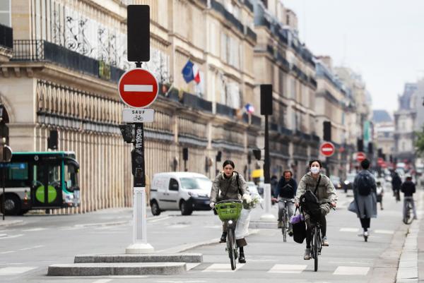 在巴黎街道上的骑自行车者,摄于5月4日。(AFP/Getty Images)