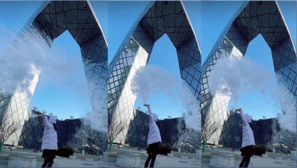 中国大陆受寒潮侵袭,多地气温骤降,网友 “ 泼水成冰 ”。(图片来源:微博)