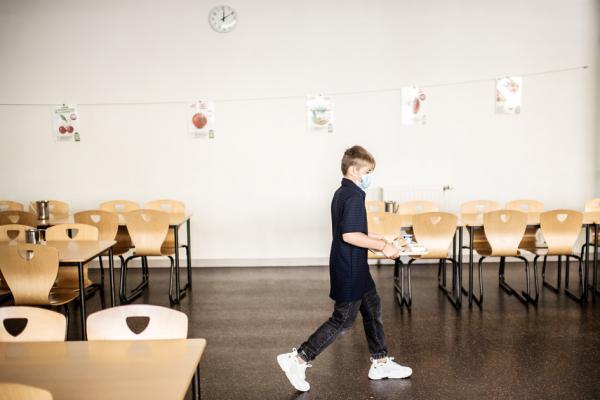 位于巴黎东部Vincennes的Françoise Giroud中学,一名学生戴着口罩