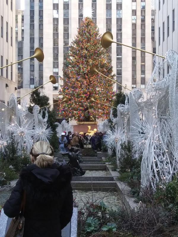 洛克菲勒中心广场上的圣诞树 。 (图片来源:程帆/看中国)
