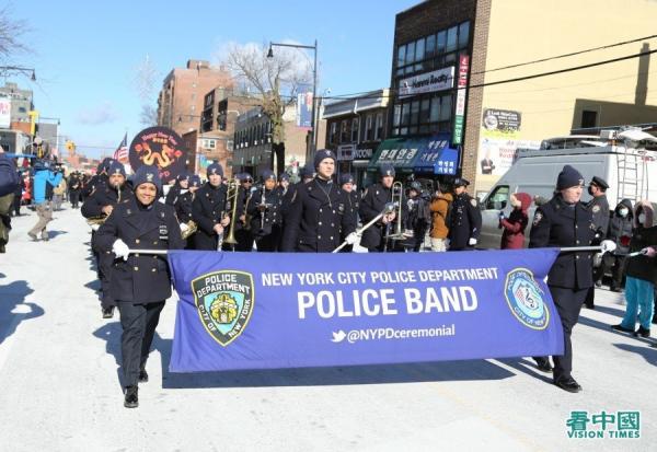 游行路线在法拉盛中心,在友联街(Union St.)109分局门前起步,沿友联街、三福大道(Sanford Ave.)、缅街(Main St.),抵达39大道飞越皇后大楼前,虽然当天气温只有摄氏零下5度,但前几天的雨夹雪的天气已然不见,阳光普照,有许多中西方民众冒着严寒观看游行。