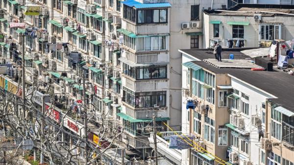 上海极端清零政策下,有人跳楼自杀。图为一小区楼顶,有两个站在楼顶边缘(图片来源:HECTOR RETAMAL/AFP via Getty Images)