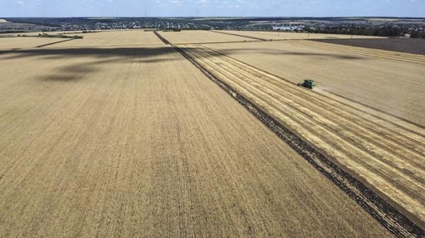 7月15日,世界最大粮仓之一的乌克兰顿涅茨克州克拉马托尔斯克附近的一名农民正在收割小麦。(MIGUEL MEDINA/AFP via Getty Image)