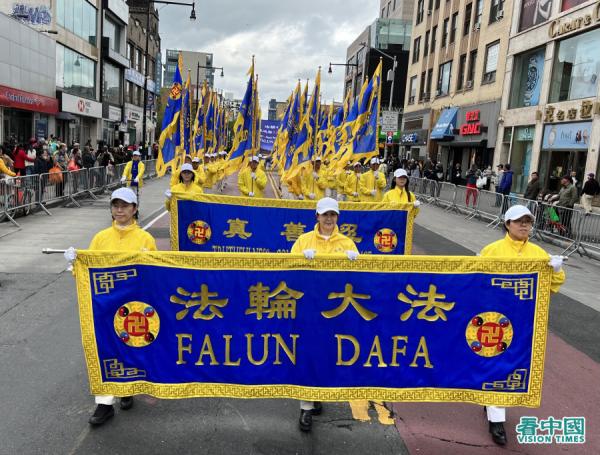 4月23日,四千多名法轮功学员在法拉盛大游行,纪念万名法轮功学员到中南海和平上访二十四周年。(看中国摄影:柳笛)