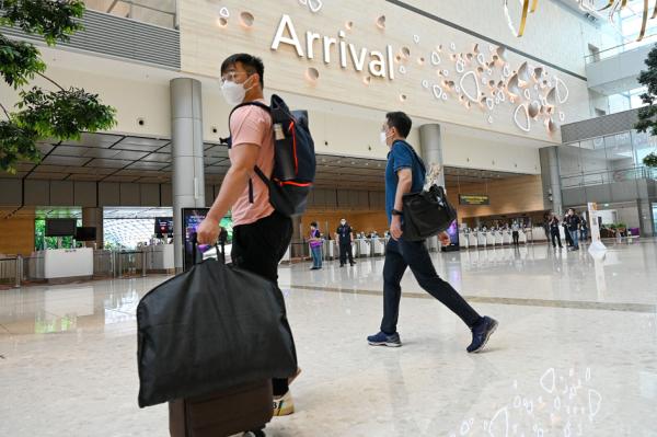 2022年9月13日,游客到达新加坡樟宜机场。(ROSLAN RAHMAN/AFP via Getty Images)