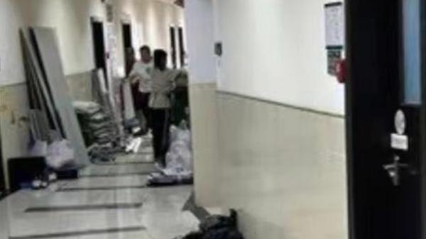中山大学附二医院正在拆除罹患癌症学生所在的实验室。(图片来源:微博截图)