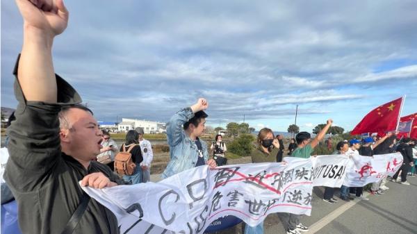 2023年11月14日,中国民主党党员在旧金山机场旁的公路抗议习近平访美。(图片来源:中国民主党提供)