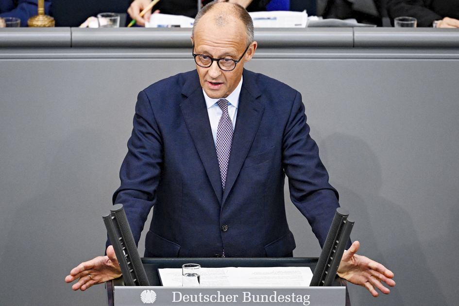 9月24日,德国总理梅尔茨就2026年预算进行辩论时发表讲话。(TOBIAS SCHWARZ/AFP via Getty Images)