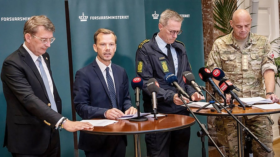 9月25日,丹麦国防部、司法部、国家警察局就近期丹麦多个机场遭遇无人机侵扰事件举行新闻发布会。(EMIL NICOLAI HELMS/Ritzau Scanpix/AFP via Getty Images)