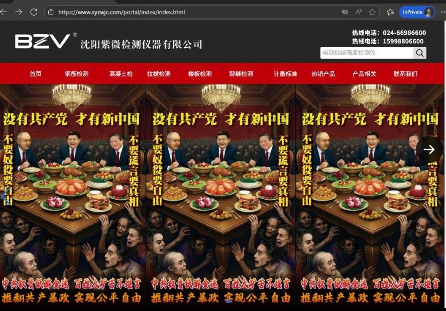 匿名者64:已成功取得跟中共航天、军工单位关系密切的沈阳紫微检测仪器有限公司网站,连同苏州华电网络等3家在电力服务、新能源和芯片科技研发领域替中共撑腰的供应商网站,“ 也被我们一锅端!中共四中全会密谋压榨老百姓的真相就摊在你面前!再放纵中共,你就只能永远当他们的人矿!”