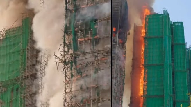 11月26日,香港新界宏福苑发生五级大火,伤亡惨重。 (图片来源:视频截图)