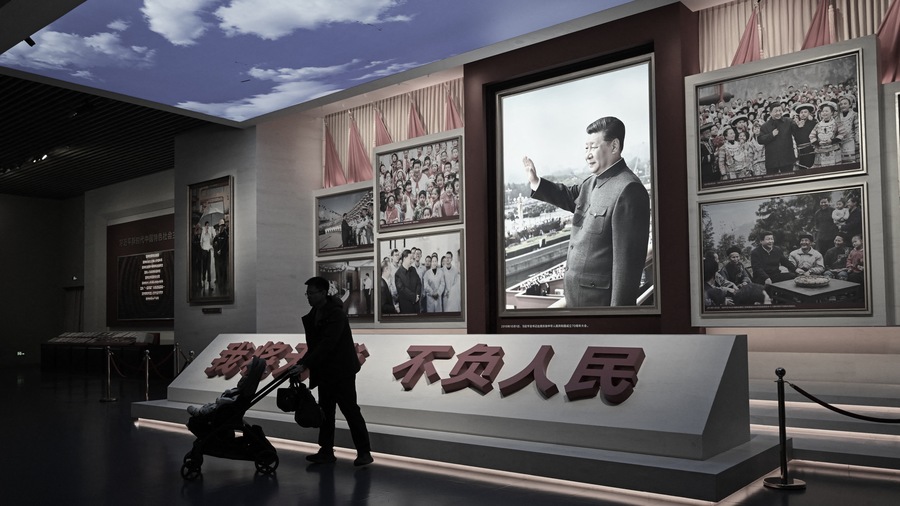 2026年3月1日,在全国人民代表大会年度会议开幕前夕,参观 者走过位于北京的中国共产党博物馆。 (图片来源:Pedro PARDO / AFP via Getty Images)