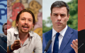 从左至有依次为:保守派人民党(PP)主席拉霍伊(Mariano Rajoy)、极左派我们能党(Podemos)主席伊格莱西亚(Pablo Igleasias)、